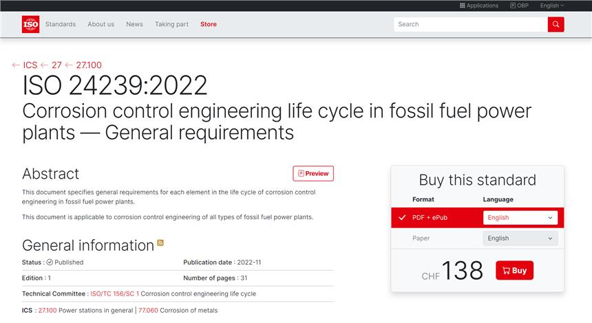ISO 24239國際標準是由中國倡議并主導構建的國際腐蝕控制工程全生命周期標準體系框架下的一項重要標準化成果,是“腐蝕控制整體工程化”“全生命周期管理”理念同腐蝕控制科學技術成果、優秀工程實踐相融合,并首次在具體行業中實施技術標準化的成功探索。該標準以發電廠腐蝕控制工程為對象,對其全生命周期涉及的腐蝕源、材料、設計、制造、安裝、調試、運行、報廢等18個技術要素作出了標準化規定,以期全面、有效控制電廠系統設備的腐蝕危害,標準的發布為提升全世界范圍內電力系統設備腐蝕控制成效提供了技術遵循,進而實現電廠安全、經濟、長周期運行和綠色保護的總體目標。