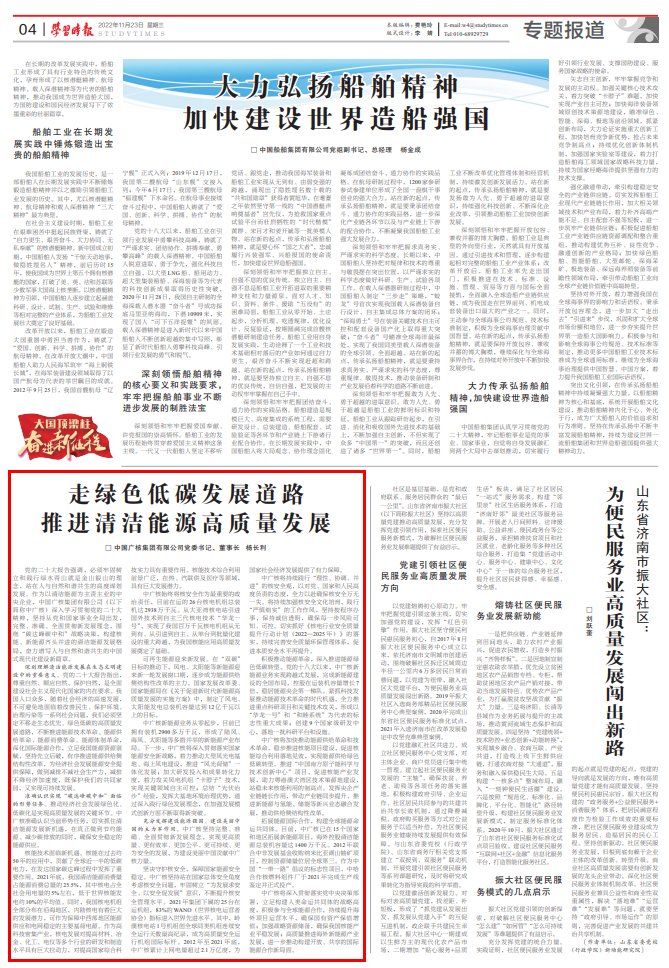 充分發揮建設能源強國、建設美麗中國的主力軍作用。中廣核堅持完整、準確、全面貫徹新發展理念,實現更高質量、更有效率、更加公平、更可持續、更為安全的發展,為建設美麗中國貢獻中廣核力量。