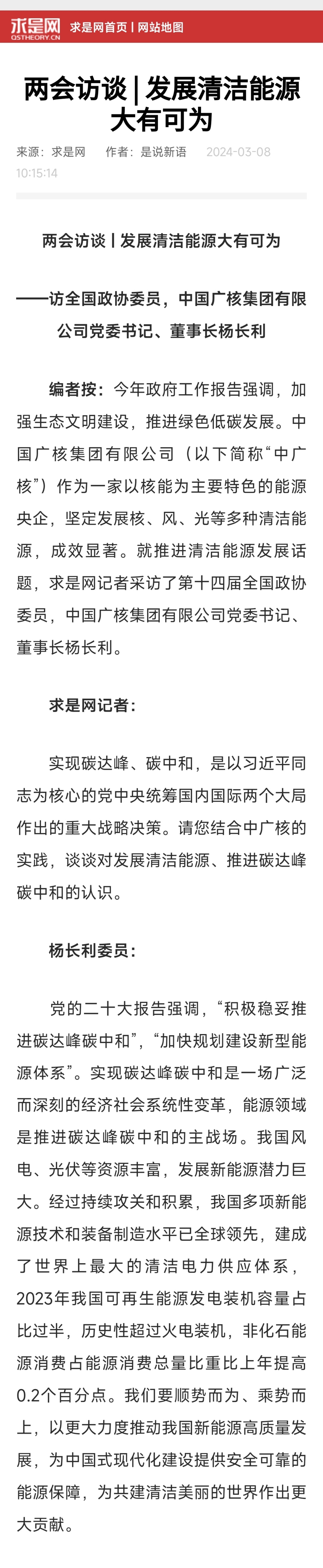 兩會訪談 | 發(fā)展清潔能源大有可為——訪全國政協(xié)委員,中國廣核集團有限公司黨委書記、董事長楊長利