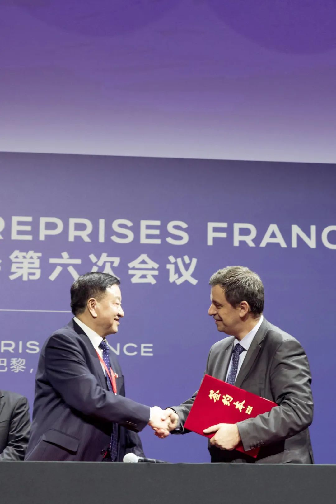 閉幕式后,雙方企業簽署金融、核能、航空、制造業、新能源等領域15項合作協議。中國廣核集團有限公司董事長楊長利應邀出席活動,并于6日晚作為企業代表之一參加了中法兩國元首共同出席的國宴。