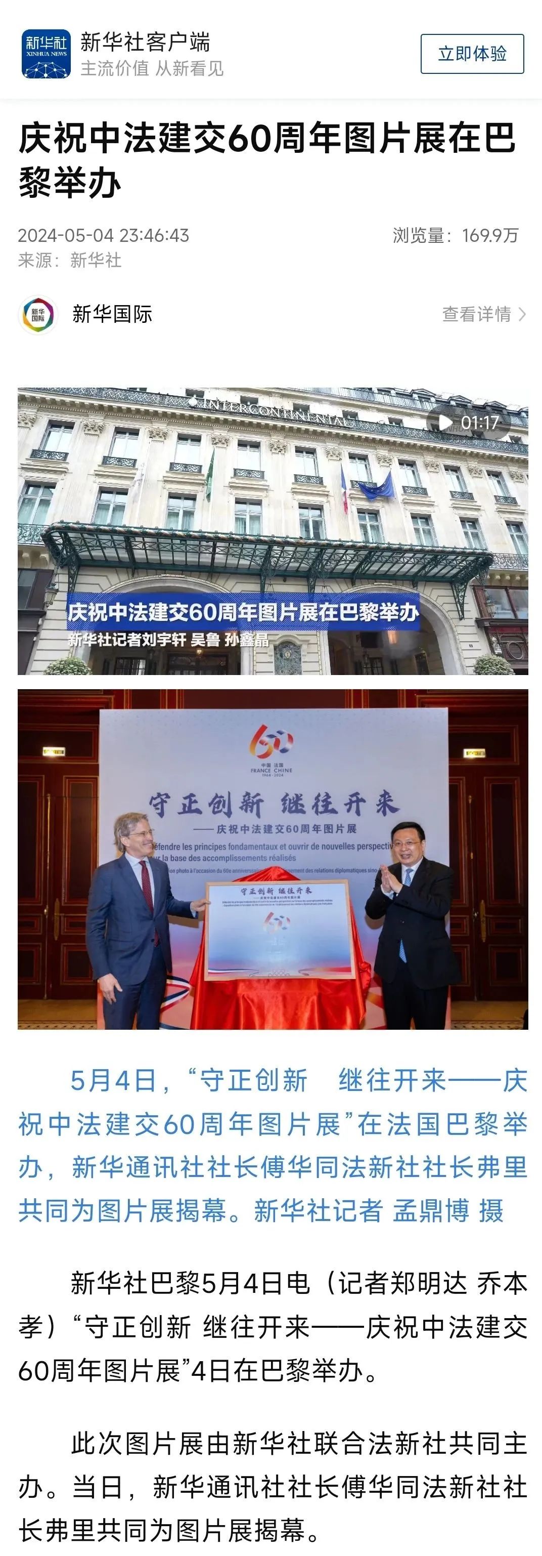 今年是中法建交60周年