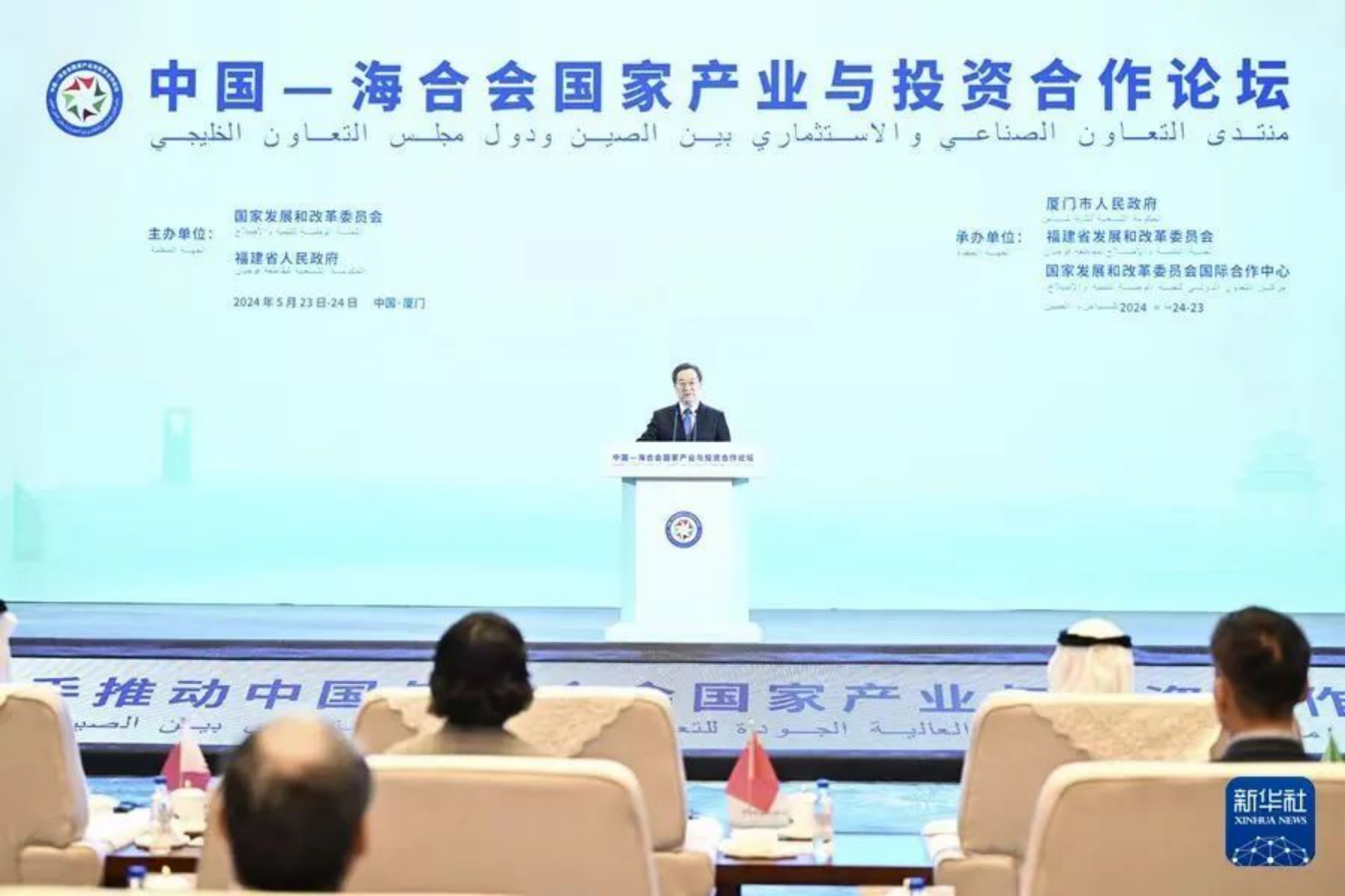 5月23日,中國—海合會國家產業與投資合作論壇在福建省廈門市開幕。中共中央政治局常委、國務院副總理丁薛祥出席論壇開幕式,宣讀習近平主席賀信并致辭。中國廣核集團有限公司黨委書記、董事長楊長利應邀參加論壇。