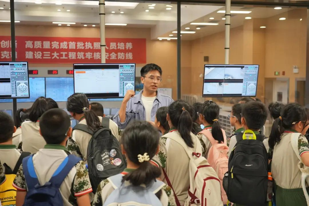 10月14日,惠州翠竹學(xué)校54名師生來到太平嶺核電基地。他們懷揣好奇與熱情,開啟全國首座生態(tài)核電建設(shè)示范項目探索之旅。師生們先后參觀綜合辦公樓6樓平臺、基地消防樓、全范圍模擬機等,核電工程師用通俗易懂的語言講述太平嶺核電發(fā)展歷程與核安全知識。同時,在核電操縱員帶領(lǐng)下,大家了解核電操縱人員成長歷程及核電“大腦”操縱運維方式。