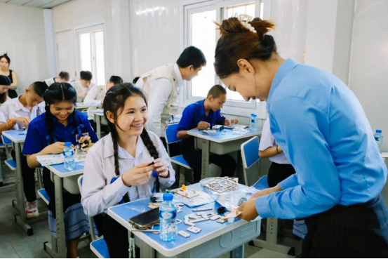▲中廣核“螢火計(jì)劃”志愿者走進(jìn)萬(wàn)象省巴恩縣貧困生培訓(xùn)學(xué)校