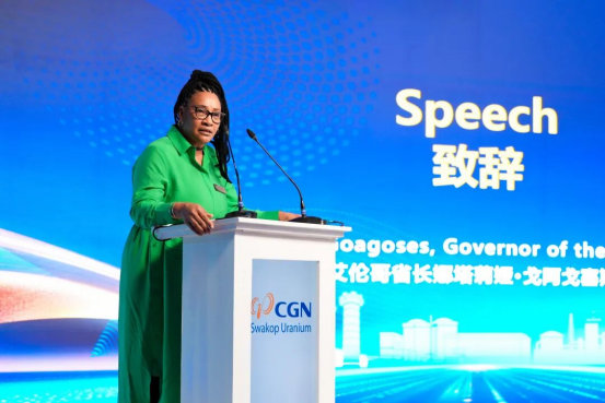 李歷在致辭中表示,中廣核自2012年開始,在納米比亞投資建設運營全球第三大鈾礦——湖山鈾礦,目前已成為納米比亞“國家名片”“一帶一路”標志性工程和中納兩國互利共贏合作的典范項目。在見證、參與、推動中納兩國偉大友誼的過程中,中廣核始終心懷“三個美好愿望”:一是將湖山鈾礦建設成為世界一流“綠色礦山”,二是將湖山鈾礦打造成為“共建共享”典范,三是將湖山鈾礦打造成為“文化融合”標桿。她強調,未來中廣核將始終以“發展清潔能源,造福人類社會”為使命,深化中納能源合作,讓湖山項目持續煥發活力,讓清潔能源之光照進更多家庭,為譜寫中納友好新篇章、構建中非命運共同體貢獻更大力量,中廣核愿與全球同行攜手并進,共同開創清潔能源發展的美好未來。