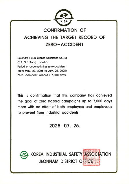 突破7000天!韓國栗村電廠再度刷新安全運(yùn)行紀(jì)錄
